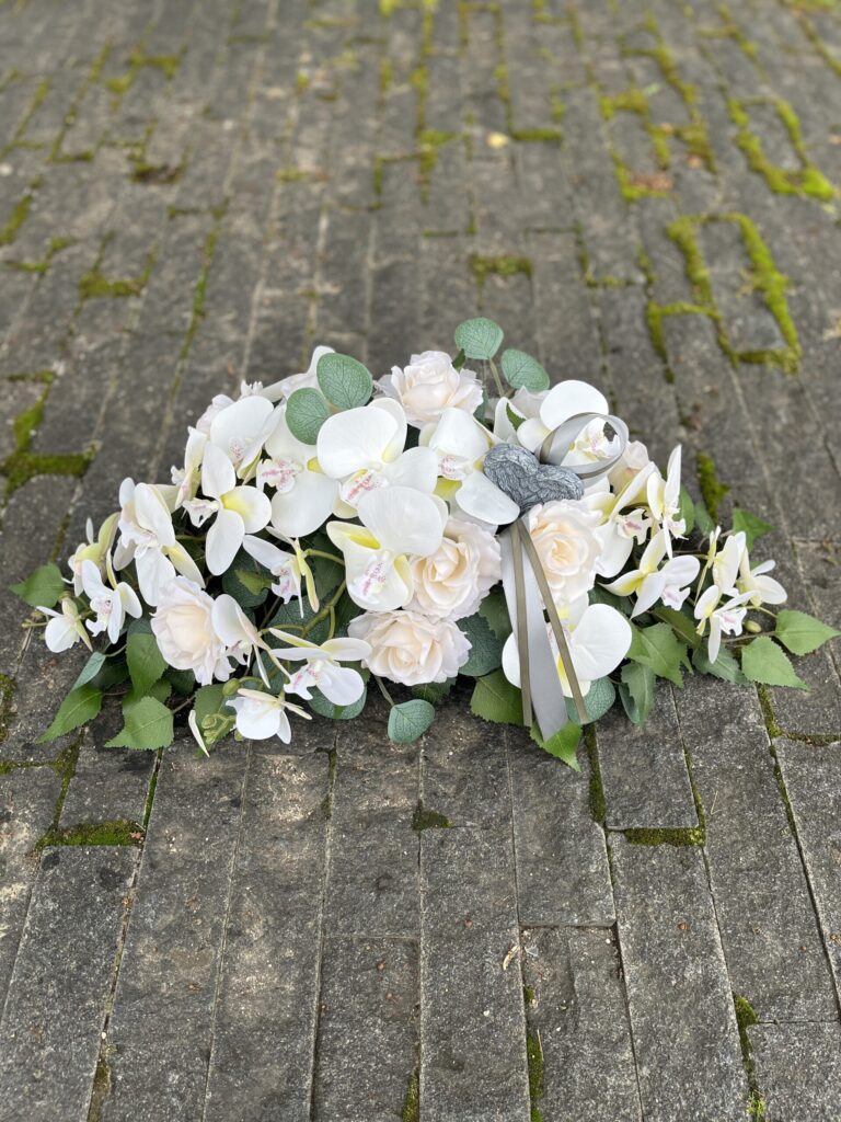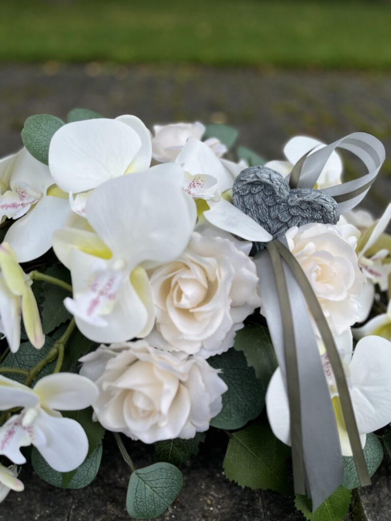 Kiekviena gedulo kompozicija su orchidėjomis mūsų studijoje yra gaminama rankomis, išskirtinai pagal užsakymą, kad atspindėtų tiek estetiką, tiek emociją. Gėlių derinys „Dangaus prisilietimas“ pasižymi harmoningais tonais ir subtiliu dizainu, todėl puikiai tinka gedulo ceremonijoms, laidotuvėms ar atminimo dienoms. Orchidėja – tai tyrumo ir amžinybės simbolis, suteikiantis kompozicijai ypatingo prabangos ir ramybės jausmo.