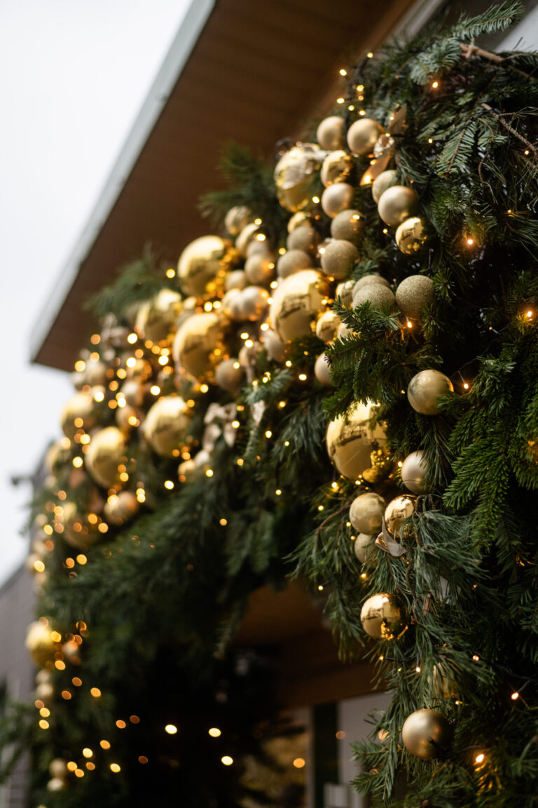 Šventės – tai laikas, kai kiekviena erdvė gali spindėti jaukumu, prabanga ir šventine nuotaika. Kalėdinis fasado dekoras „Aukso žavesys“ – tai išskirtinis Gėlių Loftas sukurtas sprendimas, suteikiantis jūsų fasadui elegancijos ir išskirtinumo. Šis dekoras pasižymi sodria spygliuočių žaluma, sukomponuota su įvairių dydžių auksiniais, šampano atspalvių bei blizgančiais rutuliais ir LED girliandomis. Rezultatas – tikras šventinis įspūdis, pritraukiantis dėmesį ir kuriantis prabangos pojūtį jūsų verslui.