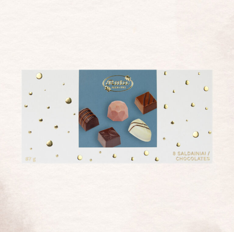 „Rūta“ – tai vienas seniausių šokolado gamintojų Lietuvoje. Nuo 1913 metų garsėjantis kokybe ir kruopštumu. Kiekvienas saldainis gaminamas atsižvelgiant į tradicijas ir šiuolaikinius skonio poreikius. Rinkinys suteiks ne tik saldumo, bet ir estetinį malonumą.