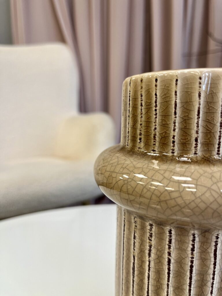 Ši vaza derės su skandinavišku, moderniu, minimalistiniu ar klasikinio stiliaus interjeru . Jos neutrali smėlio spalva puikiai sujungia kontrastingus elementus ir suteikia erdvei šilumos. Dovanai ji tinka dėl savo universalumo: dovanodami vazą, dovanojate ne tik objektą, bet ir galimybę kiekvieną dieną kurti skirtingas gėlių kompozicijas.